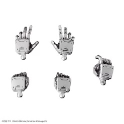 Les diverses pièces de mains et poignées (à droite) sont incluses afin d’équiper l’armement dédié tel que le grand fusil “Marusu 133 Kai” (conçu à l’origine par l’auteur original Eiichi Shimizu).