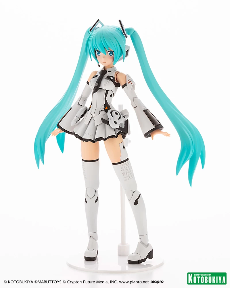 En plus de son visage standard orienté vers la gauche, elle est également livrée avec un visage orienté vers l’avant et un visage chantant orienté vers la droite, ce qui vous permet d’interchanger ses parties de visage avec celles de Frame Music Girl Hatsune Miku !